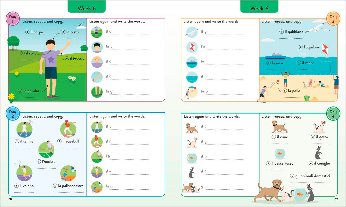 Designed with colourful illustrations and age-appropriate learning in mind, this book introduces just five new Italian words each day, making language learning easy, enjoyable, and achievable. Perfect for beginners, it encourages consistency without overwhelming young readers.